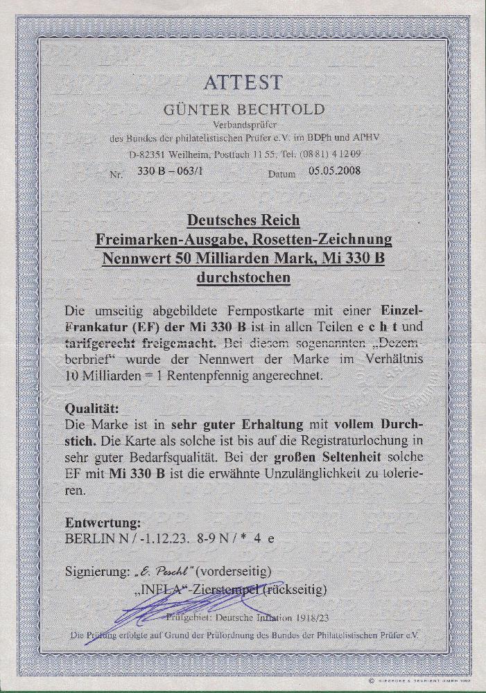 | Prüfer: | Bechtold, Günter (BPP (Bund Philatelistischer Prüfer)) |