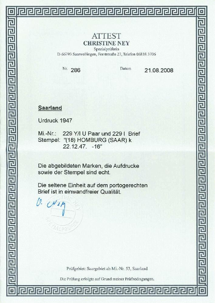 | Prüfgebiet: | Saarland (ab Mi-Nr. 206) |