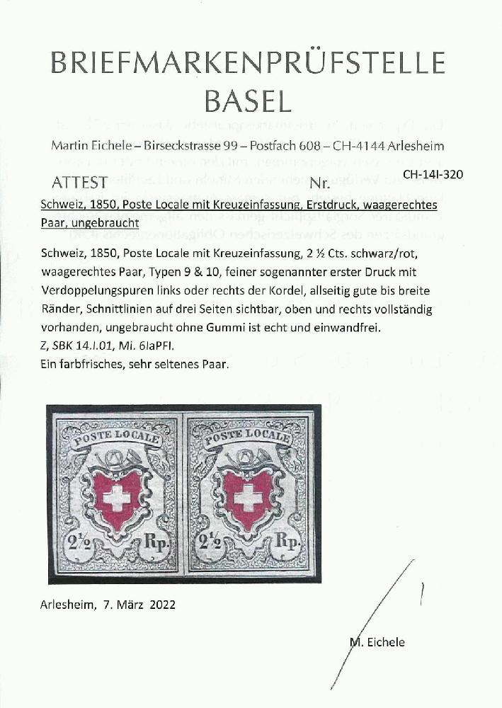 | Prüfer: | Eichele, Martin (BPB (Briefmarkenprüfstelle Basel)) |