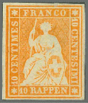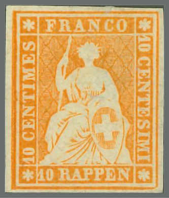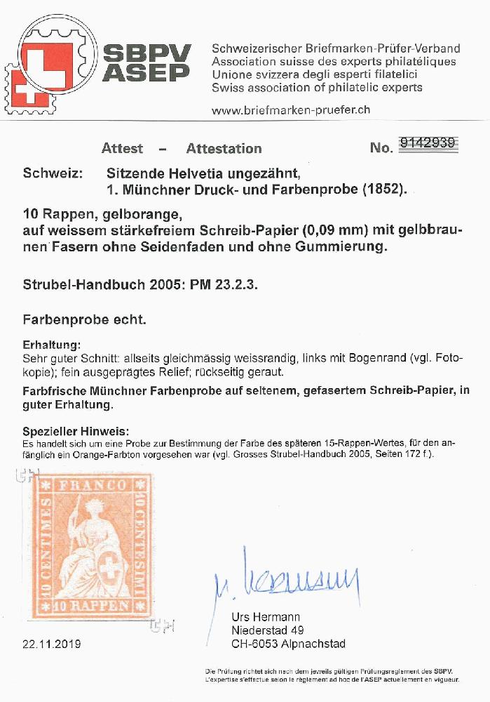 | Zusatzinformationen und Suchstichworte: | Rapp Auktion 2022 Auktionstermin: 2. - 7. Mai 2022 Los 199 Schweiz Strubel 10 Rp. gelborange, Farbprobe des 1. Münchner Druck, auf Schreibpapier mit Fasern, ohne Seidenfaden und Gummierung. Eine seltene, frische Farbenprobe zur Bestimmung des späteren 15. Rp.-Wertes. PM 23.2.2. Zuschlag 400,00 CHF |