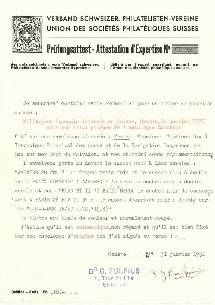 | Prüfer: | Fulpius, George (SBPV / ASEP (Schweizerischer Briefmarken-Prüfer-Verband)) |