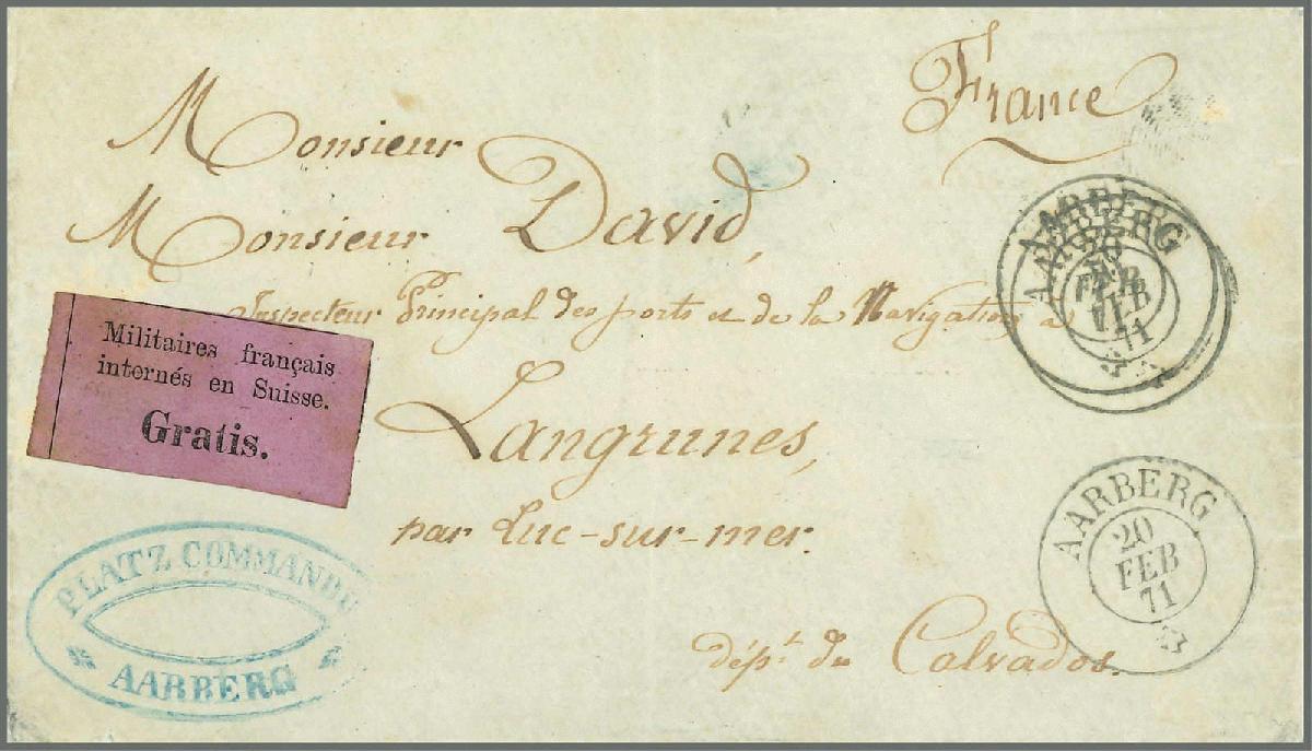 | Zusatzinformationen und Suchstichworte: | Rapp Auktion 2022 Auktionstermin: 2. - 7. Mai 2022 Los 683 Schweiz Portofreiheit für das Rote Kreuz "Gratis", breit geschnittene Etikette auf vollständigem Umschlag mit ovalem Absenderstempel AARBERG 20 FEB 71 über Bern nach LUC-S-MER in Frankreich. Saubere und gute Erhaltung. Atteste Fulpius und Eichele. Zuschlag 480,00 CHF |