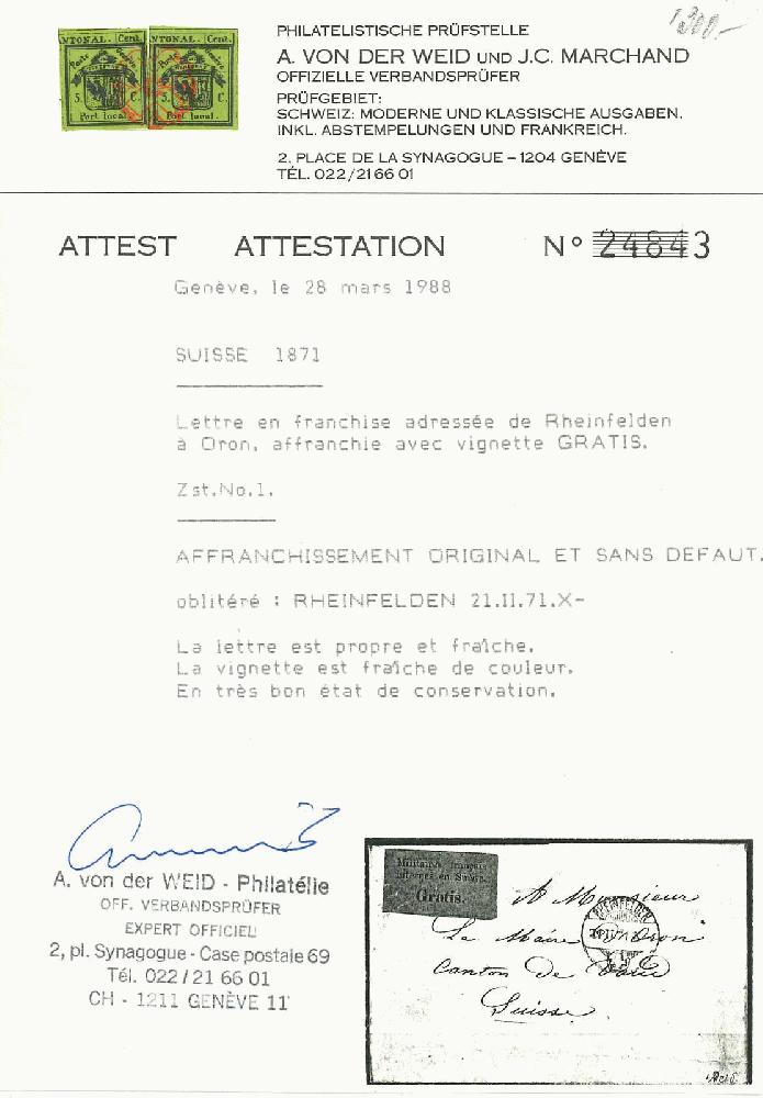 | Prüfgebiet: | Schweiz - Portofreiheitsmarken |