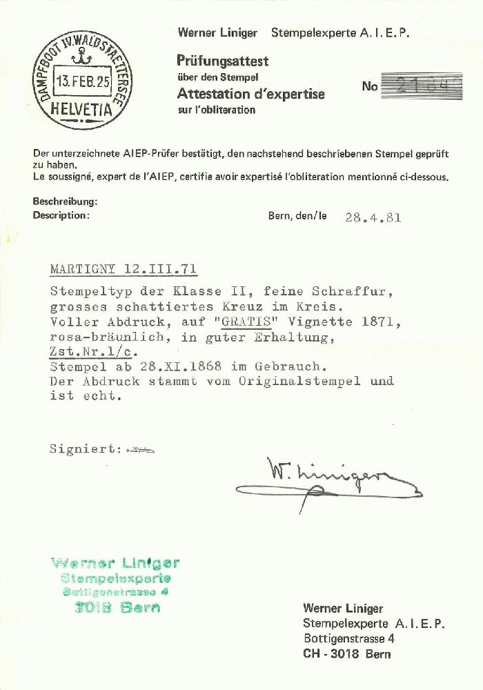 | Prüfer: | Liniger, Werner (AIEP (Association internationale des experts en philatélie)) |