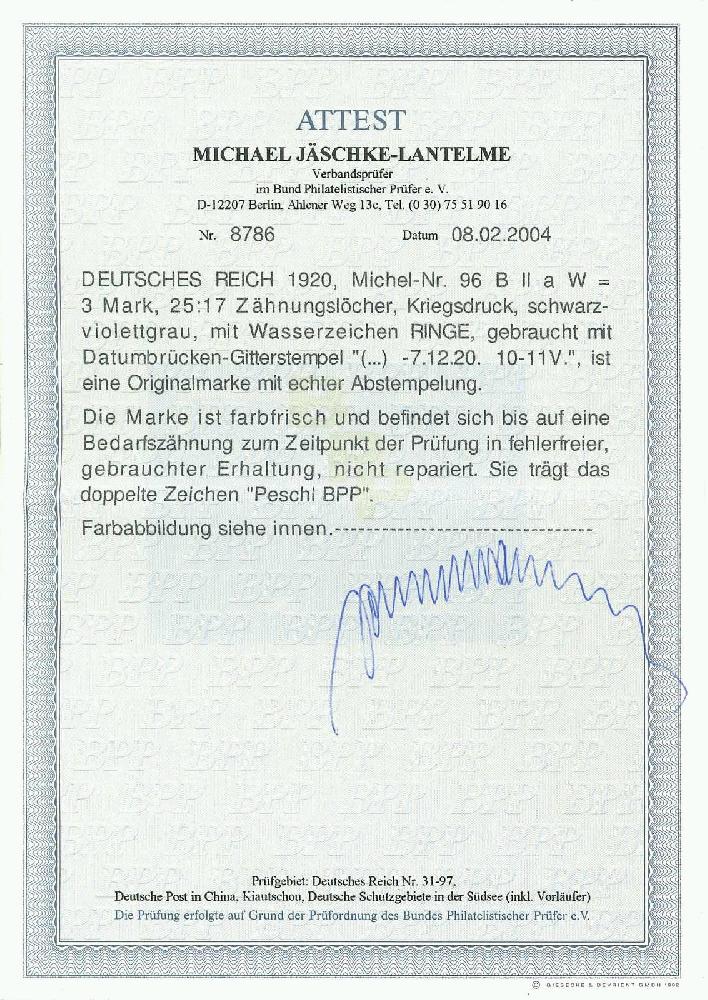 | Prüfer: | Jäschke-Lantelme, Michael (BPP (Bund Philatelistischer Prüfer)) |