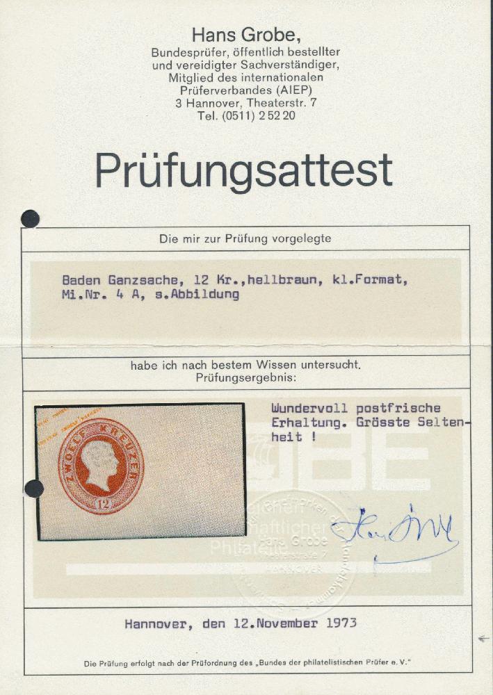 | Zusatzinformationen und Suchstichworte: | Wohlfeil 82. Auktion Auktionstermin: 17. - 18. Juni 2022 Los 600 Altdeutschland Baden 12 Kr. hellbraun, postfrisches Kabinett-Couvert, sehr seltene Ganzsache, Mi. 2000,-, Attest Grobe, sign. Seeger Ausruf 600,00 EUR |