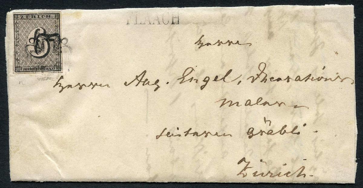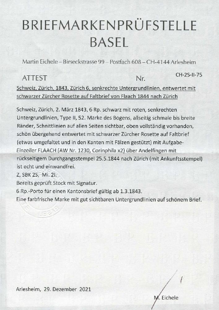 | Zusatzinformationen und Suchstichworte: | 69. Schwarzenbach Auktion Zürich Auktionstermin: 27. - 28. Mai 2022 Los 366 Schweiz Kanton Zürich Zürich 6, mit gut sichtbaren senkrechten Untergrundlinien, T.II, 52. Marke des Bogens, voll- bis breitrandig, sauber u. übergehend auf Faltbrief entwertet mit schöner schwarzer Zürcher Rosette, mit Aufgabestempel Gr. 30 FLAACH 1844 über Andelfingen nach Zürich, farbfrische Marke auf schönem Brief einwandfrei erhalten, SBK 6000.- + (Kat. Handbuch x2) Zuschlag 2.400,00 CH |