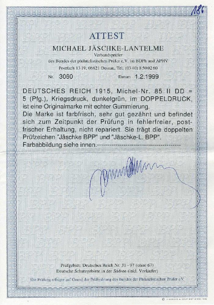 | Prüfer: | Jäschke-Lantelme, Michael (BPP (Bund Philatelistischer Prüfer)) |