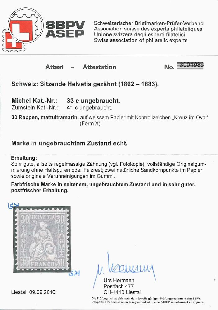 | Prüfer: | Hermann, Urs (SBPV / ASEP (Schweizerischer Briefmarken-Prüfer-Verband)) |