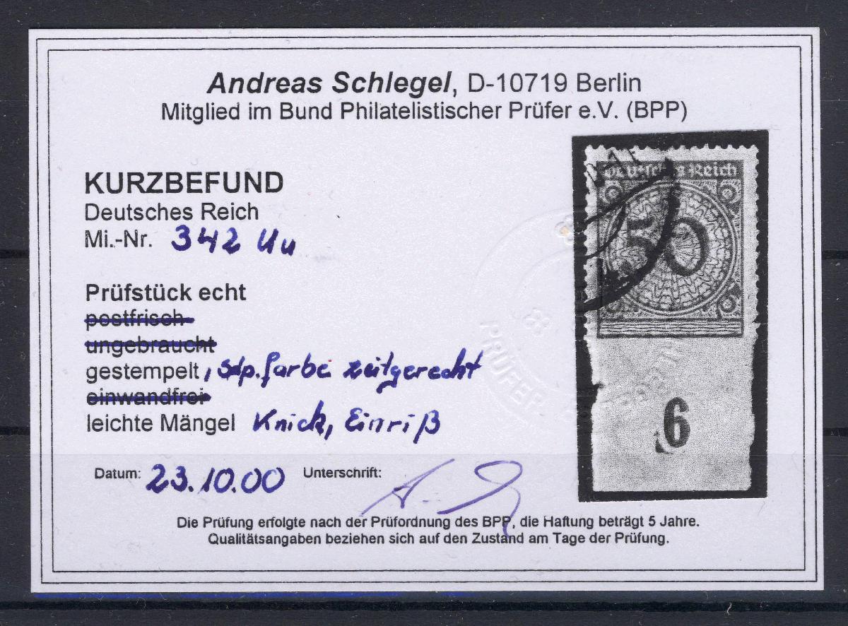 | Prüfer: | Schlegel, Andreas (BPP (Bund Philatelistischer Prüfer)) |