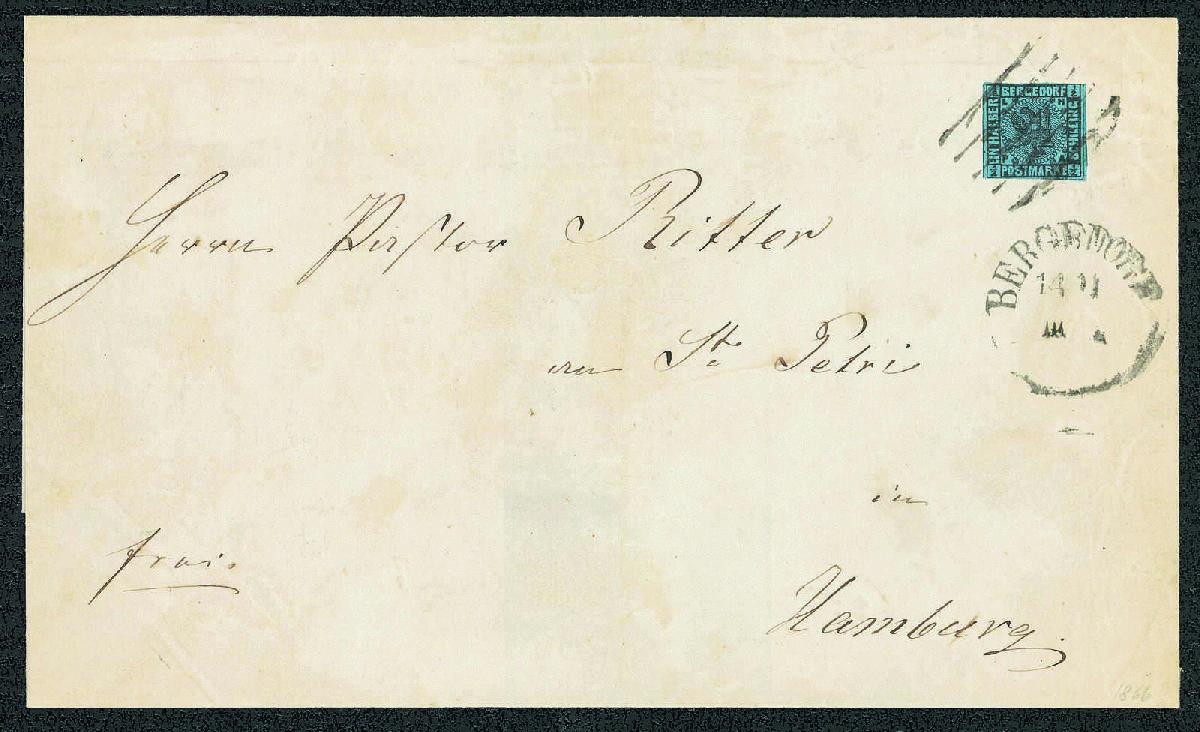 | Zusatzinformationen und Suchstichworte: | Gert Müller 114. Auktion Auktionstermin: 25. Mai 2022 Los 2784 Altdeutschland Bergedorf 1/2 Sch. schwarz auf hellblau, wundervoll farbfrisch, dreiseitig breitrandig, oben ausgabentypisch leicht berührt, als sehr seltene tarifgerechte Einzelfrankatur auf Brief mit sauber aufgesetztem Fünfstrichstempel und beigesetztem Ortsstempel "BERGEDORF 14.11." nach Hamburg mit Ankunftsstempel. Es sind nur wenige Briefe bekannt geworden, die zu den Seltenheiten der Altdeutschen Staaten zählen. Ein besonders attraktiver Brief! Fotoattest Dr. Mozek BPP. Zuschlag 2.600,00 EUR |