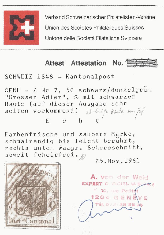 | Prüfer: | von der Weid, Alain (SBPV / ASEP (Schweizerischer Briefmarken-Prüfer-Verband)) |
