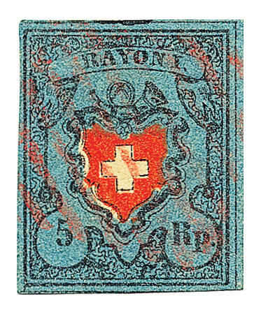 | Zusatzinformationen und Suchstichworte: | Honegger Philatelie AG - Jahresliste 2022 Los 169 Rayon I, dunkelblau mit Kreuzeinfassung Selten: 15I, Bogenecke Type 8 mit der seltenen roten Aargauer Raute. Breitrandiges Stück mit minimen Sandkornspuren (unwesentlich). Befund Marchand Festpreis 1.200,00 CHF |