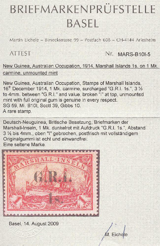 | Prüfgebiet: | Deutsche Kolonien Marshall-Inseln Britische Besetzung |