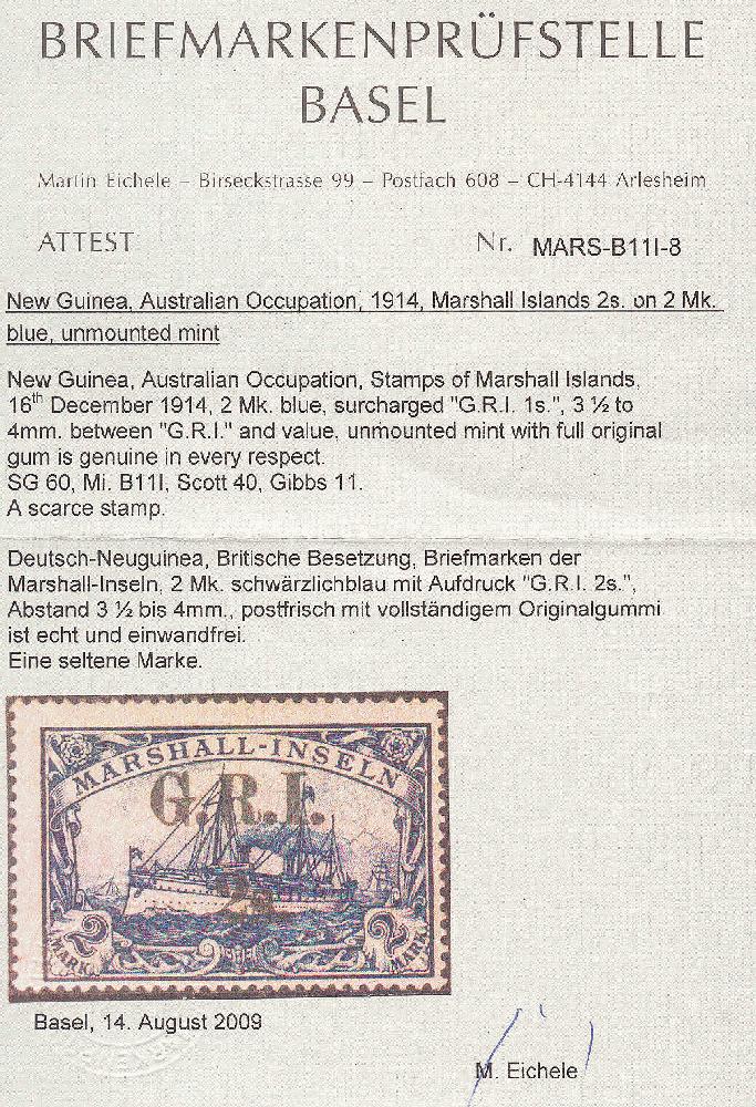 | Prüfgebiet: | Deutsche Kolonien Marshall-Inseln Britische Besetzung |