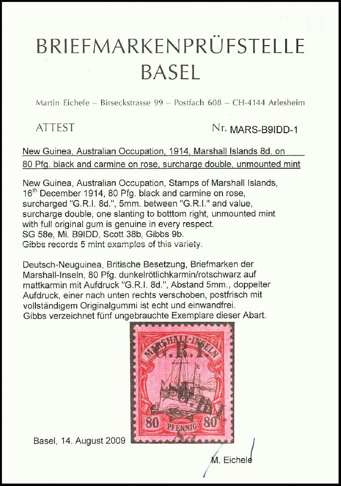 | Prüfgebiet: | Deutsche Kolonien Marshall-Inseln Britische Besetzung |