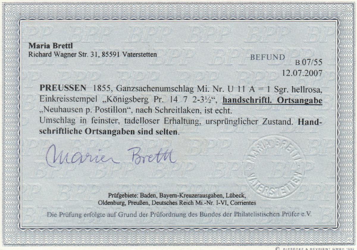 | Prüfgebiet: | Altdeutschland Preussen Ganzsachen |