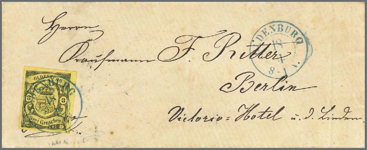 | Zusatzinformationen und Suchstichworte: | Rapp Auktion 2022 Auktionstermin: 2. - 7. Mai 2022 Los 949 Altdeutschland Oldenburg 3 Gr. schwarz auf gelb, frisch und teils sehr breit geschnitten mit übergehendem blauen Aufgabestempel OLDENBURG 18 4 auf Damenbrief-Umschlag nach Berlin. Laut Attest Brettl "feine und tadellose Erhaltung". Zuschlag 1.300,00 CHF |