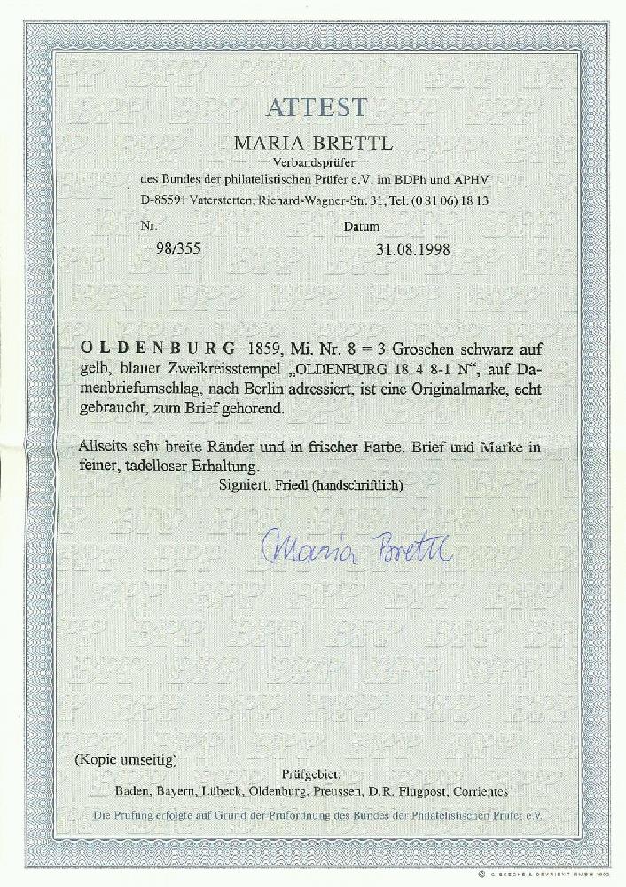 | Prüfer: | Brettl, Maria (BPP (Bund Philatelistischer Prüfer)) |