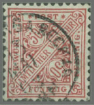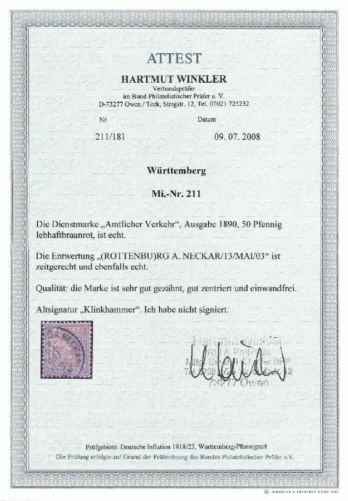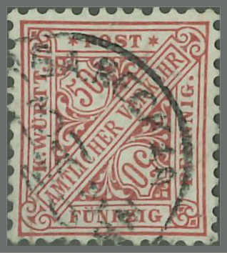 | Zusatzinformationen und Suchstichworte: | Rapp Auktion 2022 Auktionstermin: 2. - 7. Mai 2022 Los 954 Altdeutschland Württemberg 50 Pf. lebhaftbraunrot, tadellos gezähnt und relativ sauber gestempelt. Attest Winkler. Zuschlag 500,00 CHF |