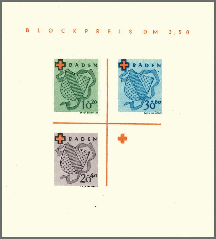 | Zusatzinformationen und Suchstichworte: | Rapp Auktion 2022 Auktionstermin: 2. - 7. Mai 2022 Los 978 Französische Zone Baden Deutsches Rotes Kreuz 1949, Block mit fehlender 40 Pf.-Marke, tadellose Erhaltung und nur in wenigen Exemplaren bekannt. Attest Schlegel. Zuschlag 2.000,00 CHF |