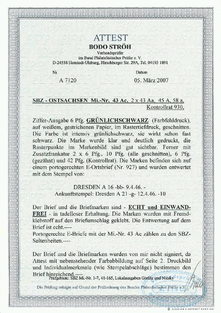 | Prüfgebiet: | Alliierte Besetzung SBZ Ost-Sachsen |