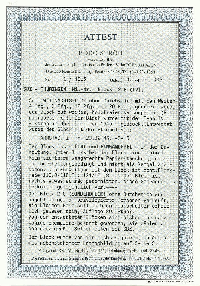 | Prüfer: | Ströh, Bodo (BPP (Bund Philatelistischer Prüfer)) |