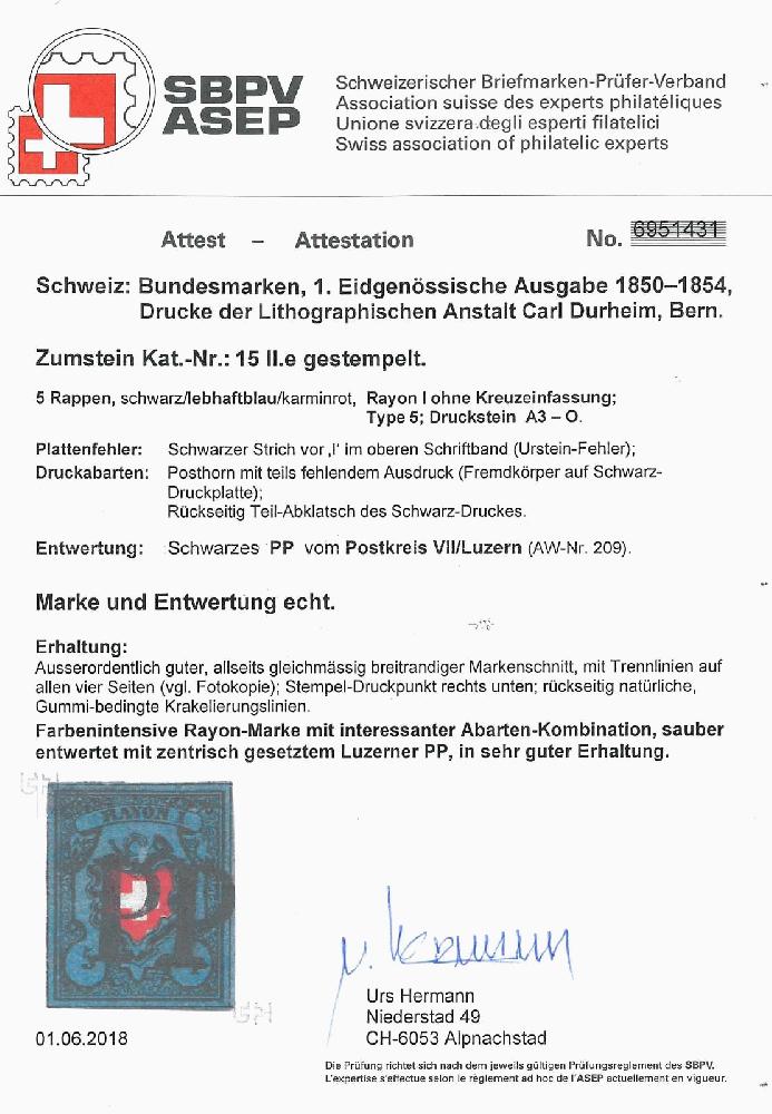 | Prüfer: | Hermann, Urs (SBPV / ASEP (Schweizerischer Briefmarken-Prüfer-Verband)) |