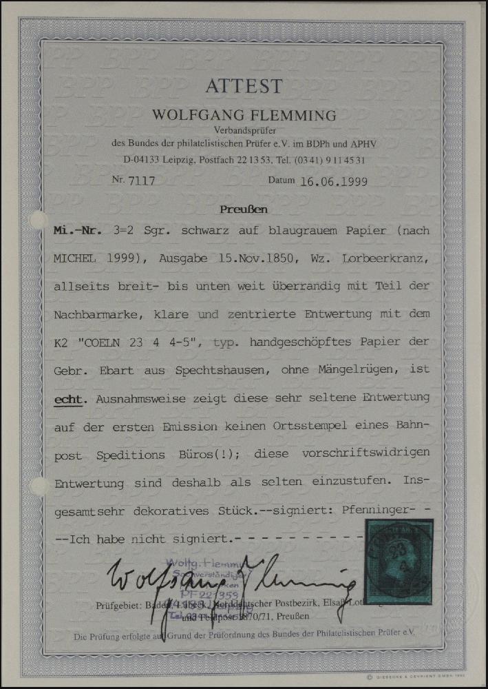 | Prüfer: | Flemming, Wolfgang (BPP (Bund Philatelistischer Prüfer)) |