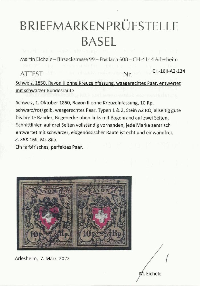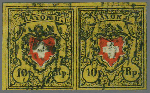 | Zusatzinformationen und Suchstichworte: | Rapp Auktion 2022 Auktionstermin: 2. - 7. Mai 2022 Los 141 Rayon II, gelb, ohne Kreuzeinfassung (Diverse) Waagrechtes Paar mit den Typen 1+2 RO, aus der Bogenecke mit sauberen Bundesrauten, tadellose Erhaltung. Attest Eichele. Zuschlag 360,00 CHF |