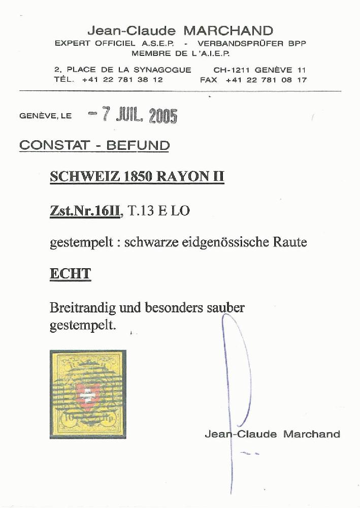 | Prüfer: | Marchand, Jean-Claude (SBPV / ASEP (Schweizerischer Briefmarken-Prüfer-Verband)) |