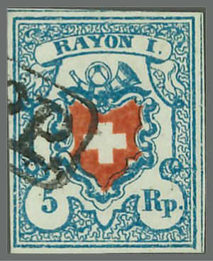 | Zusatzinformationen und Suchstichworte: | Rapp Auktion 2022 Auktionstermin: 2. - 7. Mai 2022 Los 158 Rayon I, hellblau, ohne KE (DIVERSE) Type 27 von der unteren Gruppe, sehr schöne und frische Marke mit Teilen eines schwarzen P.P. im Kästchen. attest Eichele, gez. Moser. Zuschlag 360,00 CHF |