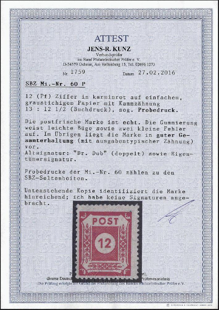 | Prüfer: | Kunz, Jens-R. (BPP (Bund Philatelistischer Prüfer)) |