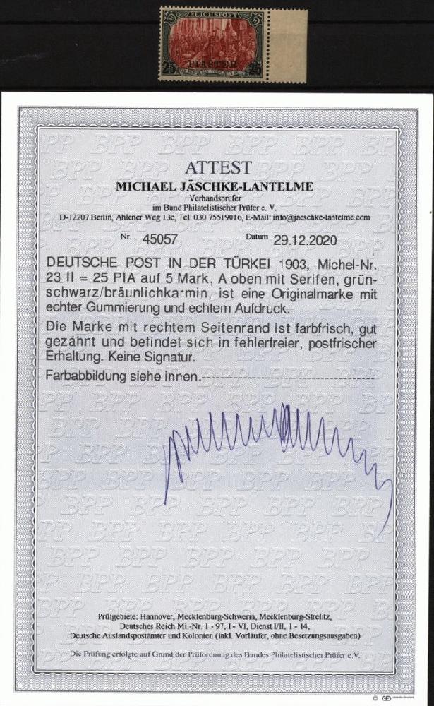 | Prüfer: | Jäschke-Lantelme, Michael (BPP (Bund Philatelistischer Prüfer)) |
