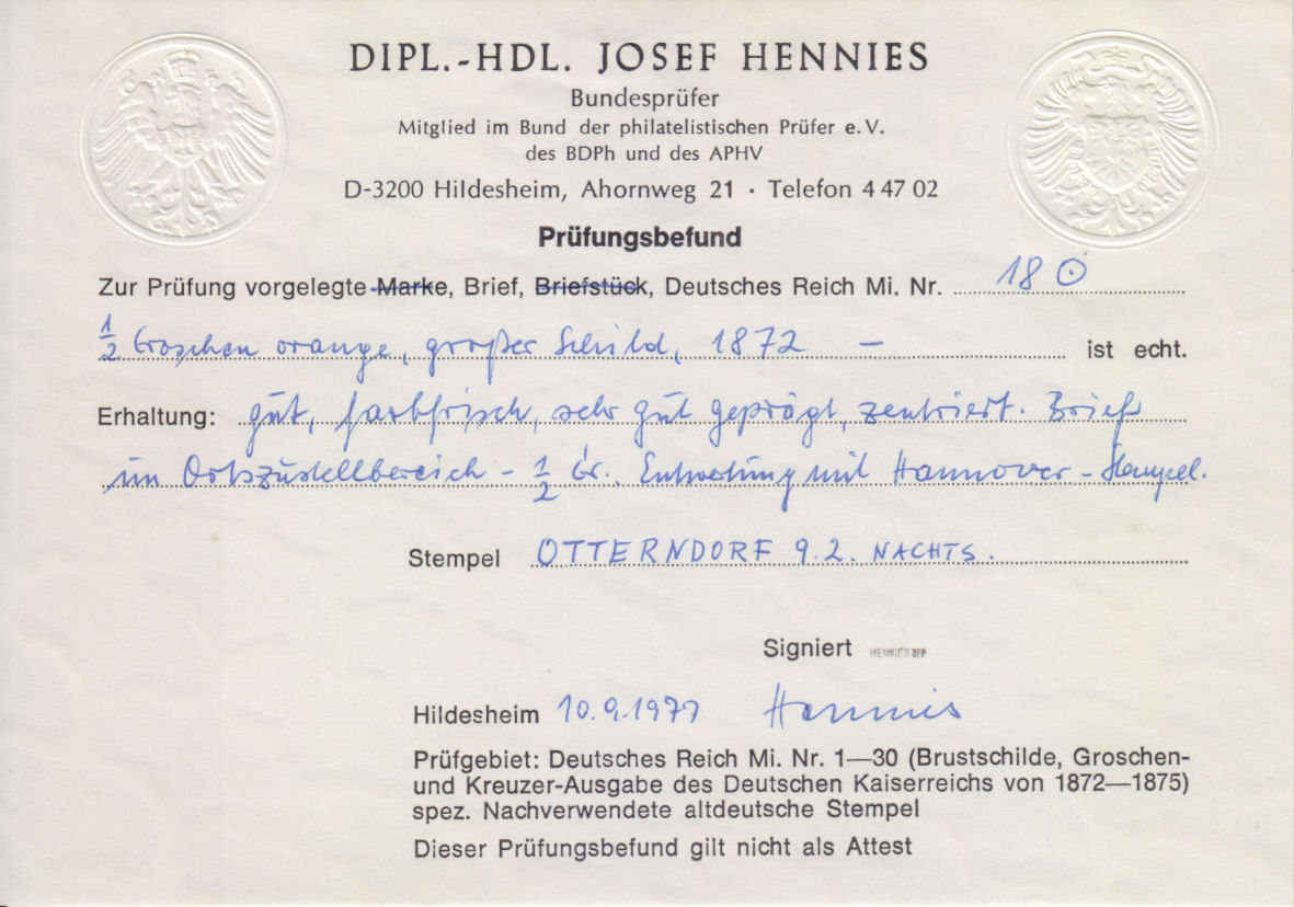 | Prüfer: | Hennies, Josef (BPP (Bund Philatelistischer Prüfer)) |