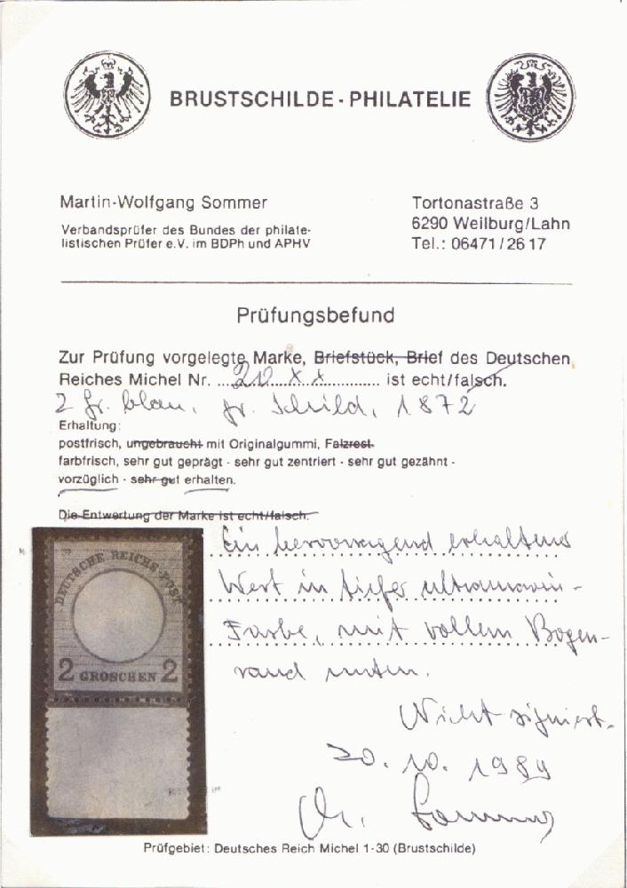| Prüfer: | Sommer, Martin-Wolfgang (BPP (Bund Philatelistischer Prüfer)) |
