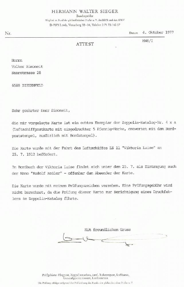 | Prüfgebiet: | Deutsches Reich Zeppelinpost (Belege) |