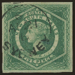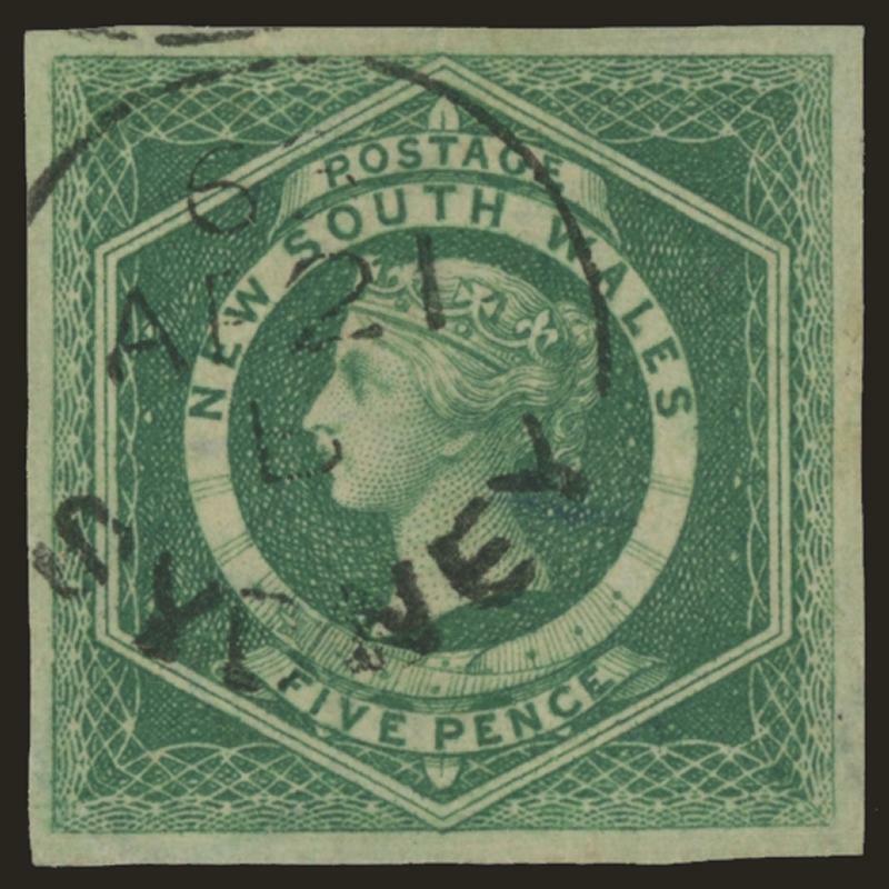 | Zusatzinformationen und Suchstichworte: | 248. Abacus Auktion Auktionstermin: 20. - 22. Juli 2022 Los 512 Neusuedwales 1854-59 große Diadems 5d mattgrün SG 88, gleichmäßig vollrandig, sauber entwertet mit part-Sydney Duplex-Stempel von 63/AP21, Gibbons garantieren b/s, Katalogwert £650. Pracht! Ex Michael Haden: verkauft zu unser Versteigerung von 14,8,2010 für $875. BPA Attest (1981) Ausruf 575,00 AUD |
