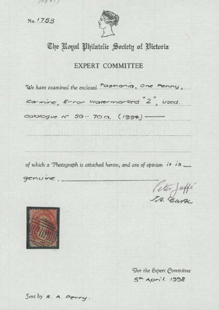 | Prüfer: | RPSVI, Royal Philatelic Society of Victoria Inc (Prüferkommission) |