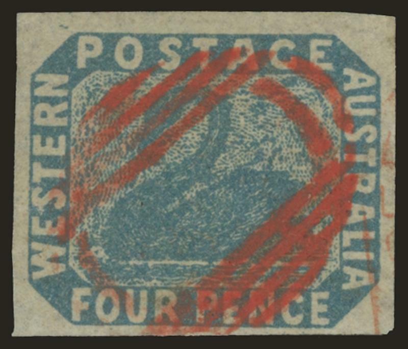 | Zusatzinformationen und Suchstichworte: | 248. Abacus Auktion Auktionstermin: 20. - 22. Juli 2022 Los 746 Westaustralien 1854-55 Lithographien ungezähnt 4d blau SG 3a, voll- bis breitrandig, zentral leere Gitterstempel in rot, Katalogwert £250 + . Unglaublich! Ex Trevor Hiscock: verkauft zu unser Versteigerung von 22,2. 2013 für $870. RPSof V Attest (2012) Ausruf 575,00 AUD |