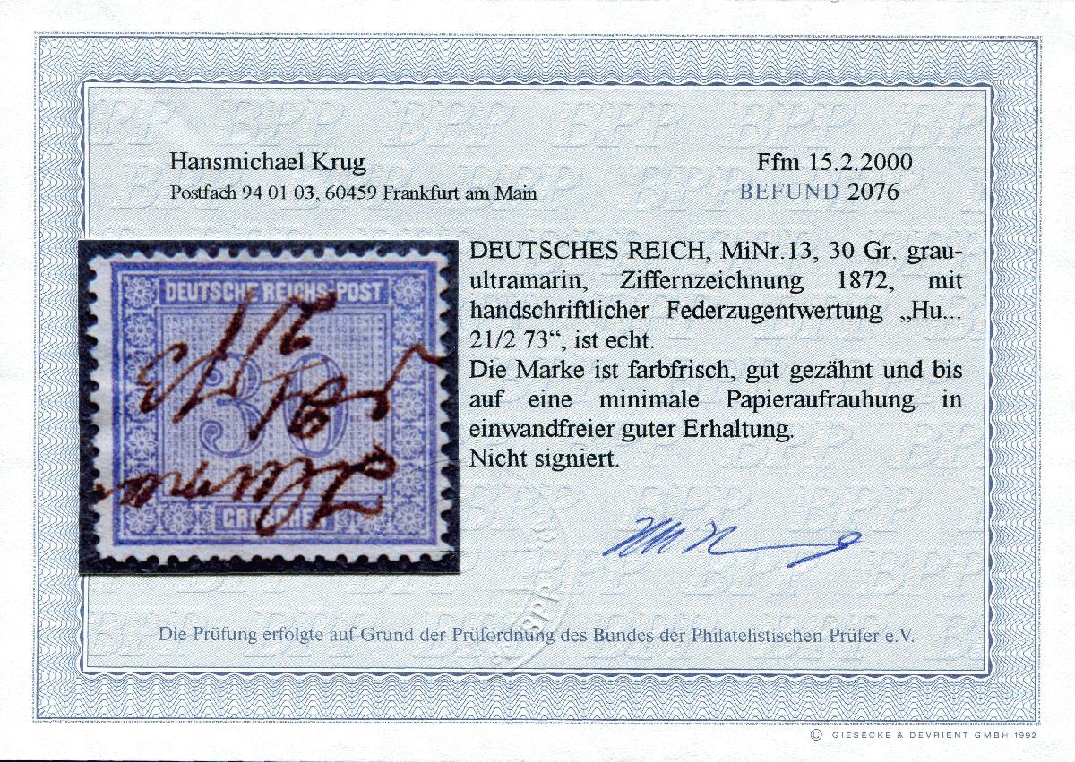 | Prüfgebiet: | Deutsches Reich 1871 - 1918 (Mi-Nr. 1 - 106) |