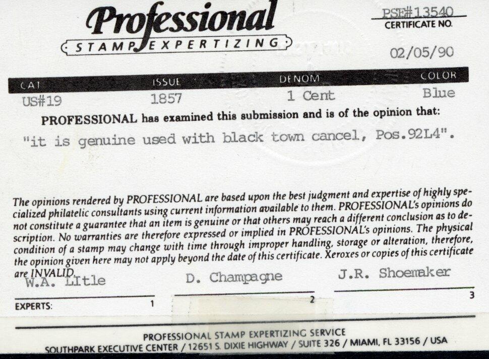 | Zusatzinformationen und Suchstichworte: | Cherrystone - Worldwide Stamps and Covers Auktionstermin: 12. - 14. Juli 2022 Los 10 USA 1857-61 Ausgabe 1857 1c blue, type Ia, position 92L4, part black cds, usual centering, showing complete type characteristics at top, deep rich color, fresh and fine example of this rare stamp, with 1990 PSE and 2005 PFCs, (Catalog value $10,000) Zuschlag 5.250,00 USD |