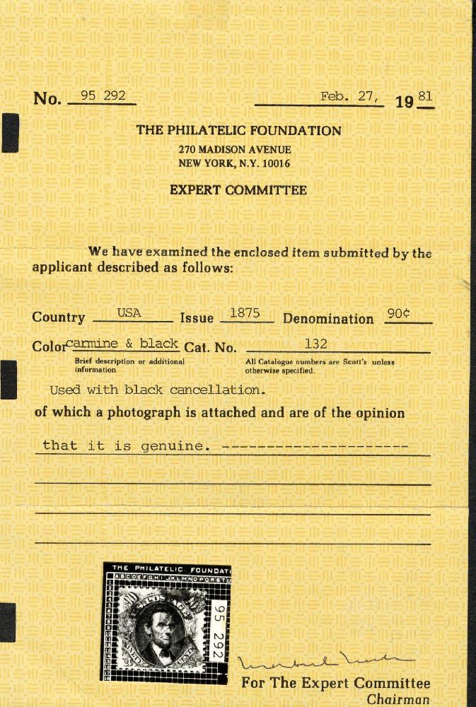 | Prüfer: | The Philatelic Foundation, (Prüferkommission) |