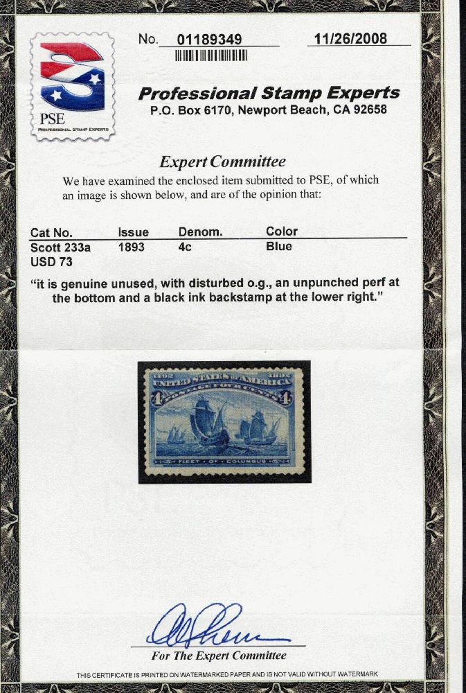 | Zusatzinformationen und Suchstichworte: | Cherrystone - Worldwide Stamps and Covers Auktionstermin: 12. - 14. Juli 2022 Los 49 USA 1893 Kolumbus Ausgabe 1893 4c blue, error of color, disturbed original gum, unpunched perf. at bottom, nice color, fresh and fine example of this popular rarity, signed Georg Buhler (described as "black ink backstamp at the lower right" on the accompanying certificate), with 2008 PSE certificate, (Catalog value $17,500) Zuschlag 8.000,00 USD |