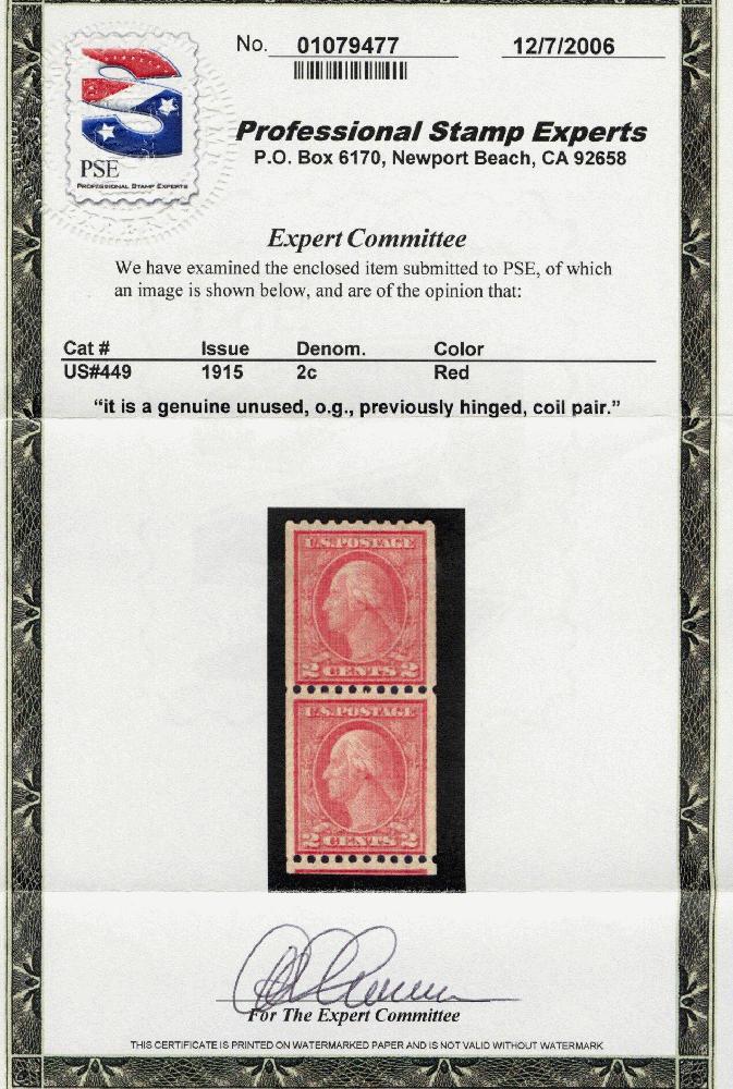 | Zusatzinformationen und Suchstichworte: | Cherrystone - Worldwide Stamps and Covers Auktionstermin: 12. - 14. Juli 2022 Los 112 USA 1909-1921 Ausgaben1914 2c red, type I, vertical coil pair, showing part of adjoining stamp at bottom, l.h., well centered, fresh color, v.f. and scarce coil pair, with 2006 PSE certificate, (Catalog value $6,000) Ausruf 4.000,00 USD |