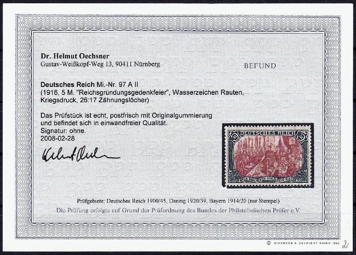 | Prüfgebiet: | Deutsches Reich 1871 - 1918 (Mi-Nr. 1 - 106) |