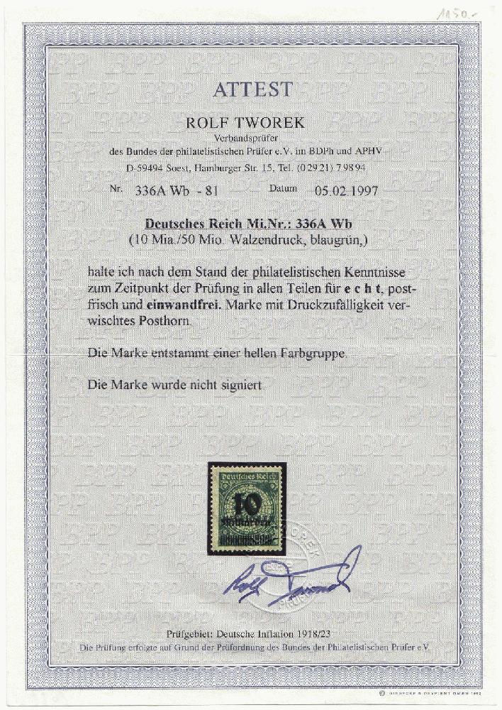 | Prüfer: | Tworek, Rolf (BPP (Bund Philatelistischer Prüfer)) |