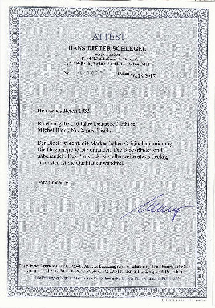 | Prüfgebiet: | Deutsches Reich Blocks 1930 - 1937 |