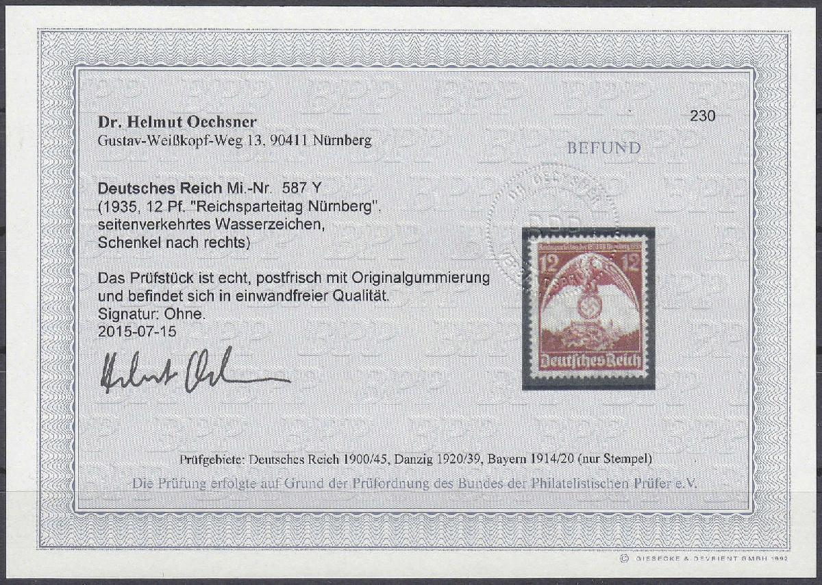 | Prüfgebiet: | Deutsches Reich 1933 - 1945 (Mi-Nr. 479 - 910) |