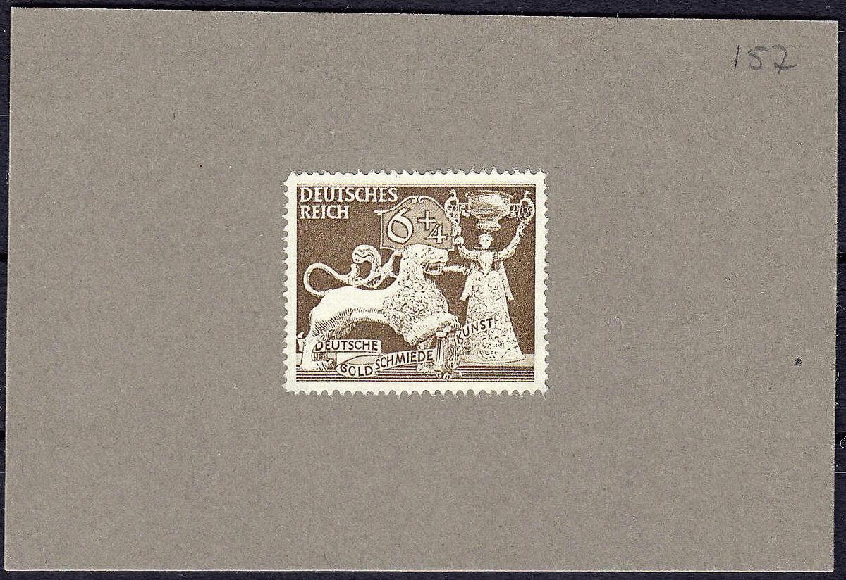 | Zusatzinformationen und Suchstichworte: | 140. & 141. Teutoburger Münzauktion Auktionstermin: 6. - 10. Dezember 2021 Los 4124 Deutsches Reich 6+4 Pf. 10 Jahre Gesellschaft für Goldschmiedekunst 1942, Farbprobe in dunkelbraun, gezähnt L 14 1/2 auf Vorlagekarton. Fotoattest Schlegel BPP. Selten im Angebot. Zuschlag 410,00 EUR |
